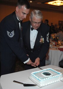 Maj. Allan M. Hodge (right) receives the 563rd Maintenance Squadron guidon from Col. Bryan P. Glynn, 23rd Maintenance Group commander, during a change-of-command ceremony on the flight line here Aug. 10. Major Hodge assumed command of the 563rd MXS from Maj. John S. Bulldis, who retired from active