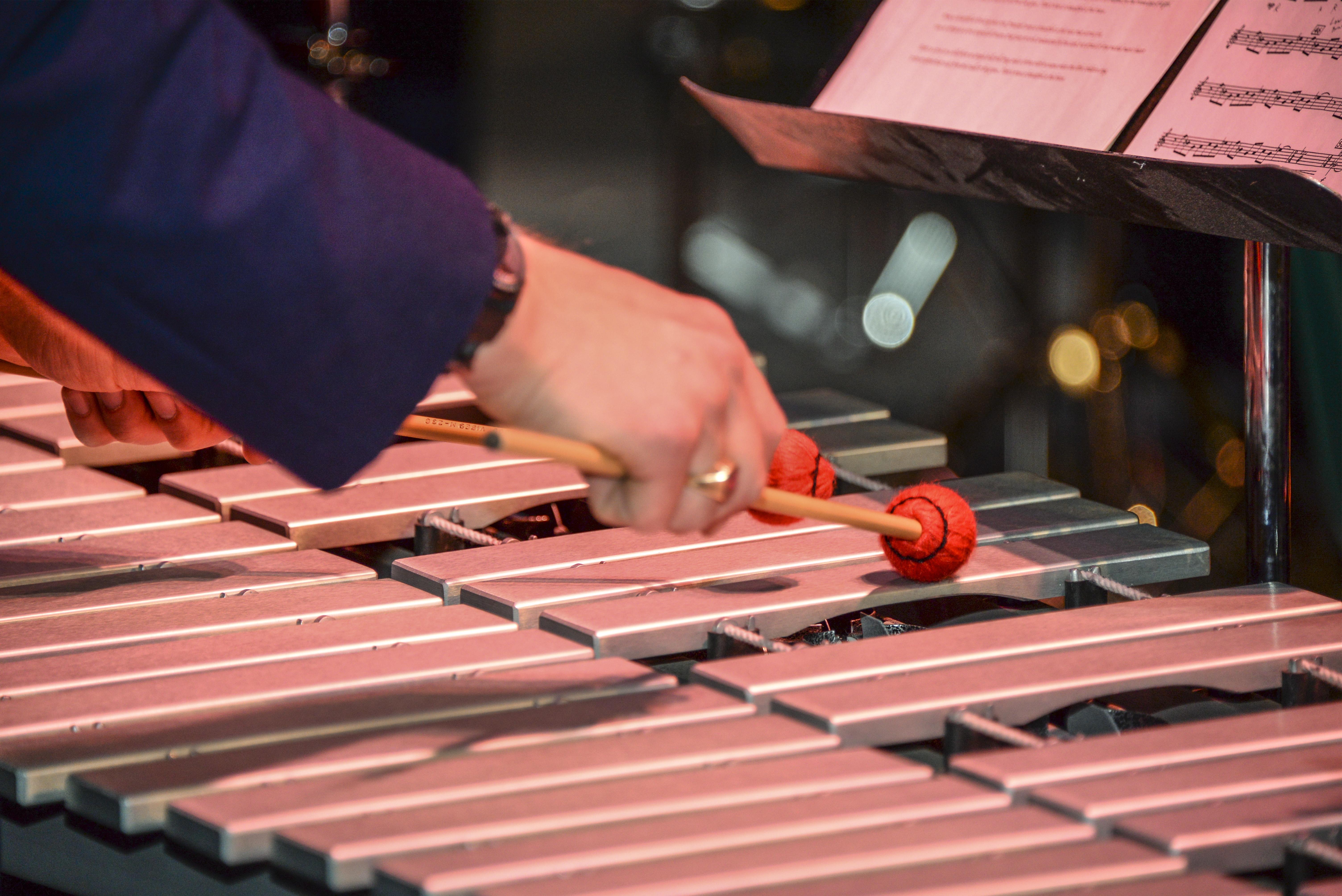 U.S. Air Force Airman 1st Class Bryan Smith, USAF Band of the Golden West percussionist, plays the vibraphone during a concert at Santa Rita High School in Tucson, Ariz., March 7, 2016. Throughout its history, the band has collaborated with some of America’s leading soloists and band conductors, receiving enthusiastic critical acclaim as one of the premier musical organizations of its kind. (U.S. Air Force photo by Airman 1st Class Mya M. Crosby/Released)